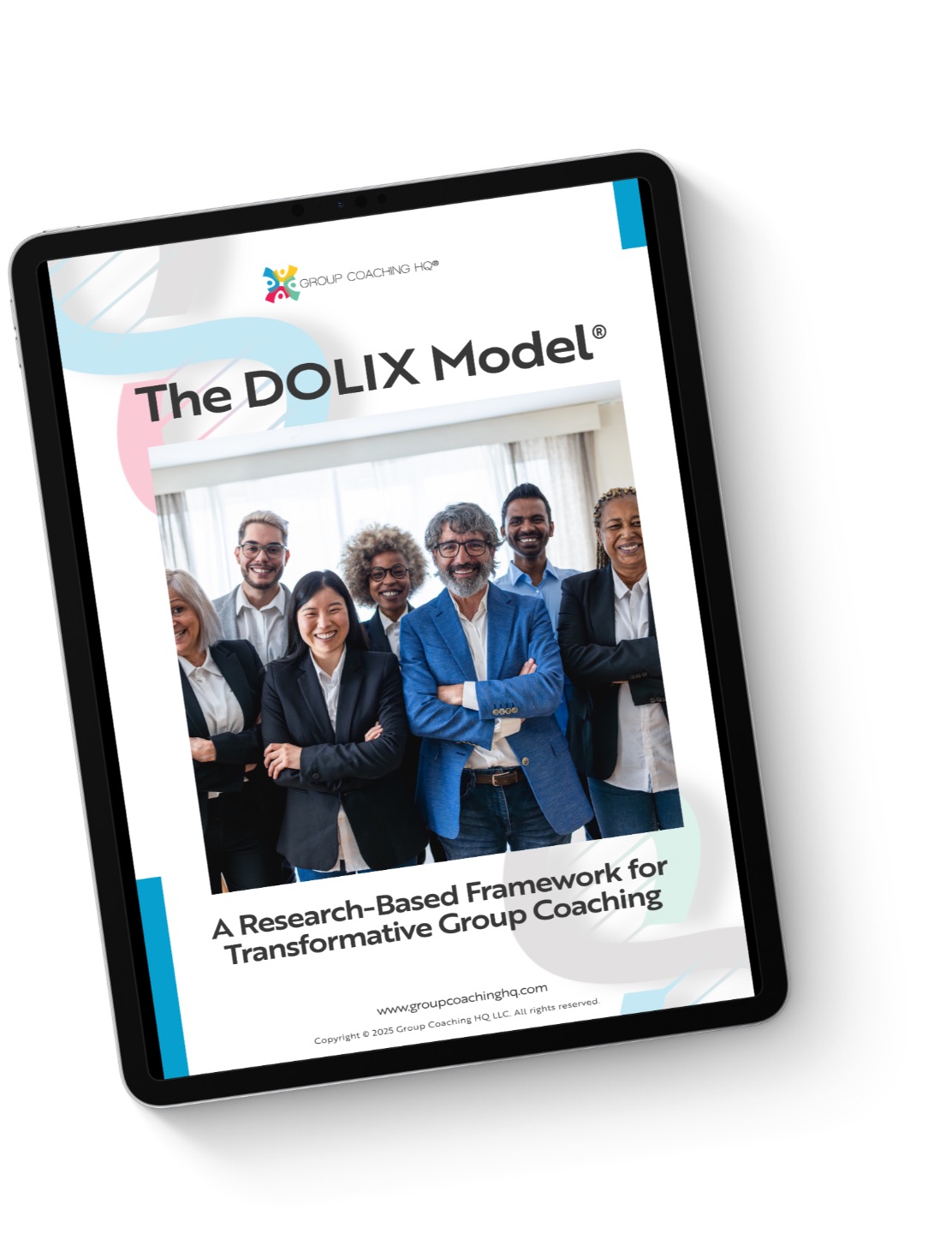 Whether you're coaching leadership teams, communities, or client cohorts,The DOLIX Model® helps you master the art of group coaching from the inside out. It brings clarity to what's really happening in the room and how to move the group forward with confidence.